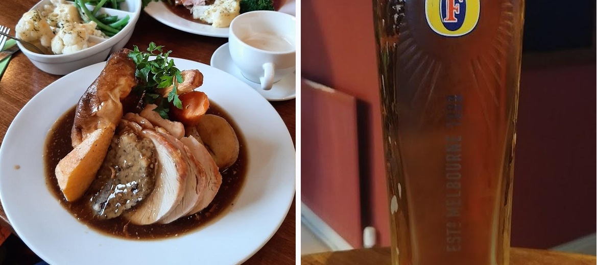 Went for Sunday lunch we managed to get a table straight away(which was lucky as it got very busy) we both had the roast beef with all the trimmings and my god there was plenty the plate came with beef roast and mash potatoes swede roasted carrots and parsnips stuffing then we got cauliflower cheese and Yorkshire pudding and a bowl off vegetables and jug off gravy absolutely delicious one warning make sure your hungry it’s a belter. Staff very friendly and attentive thank you will be going back as soon as possible
